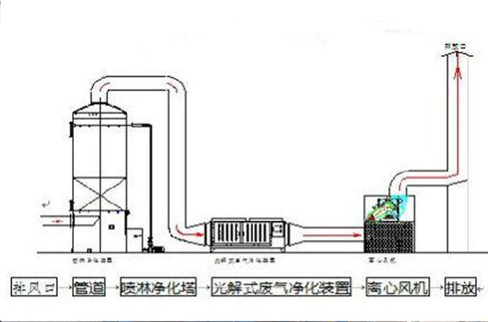 4、噴淋塔+光解式廢氣凈化裝置流程圖